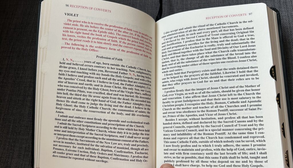 As if feelings were the only goal of a conversion, I do find that converts really do feel better abjuring their past errors. Then, they make a long statement of accepting every tenet of the Catholic Faith. There’s a long version and short version, but in both cases, it’s basically a very long Creed.