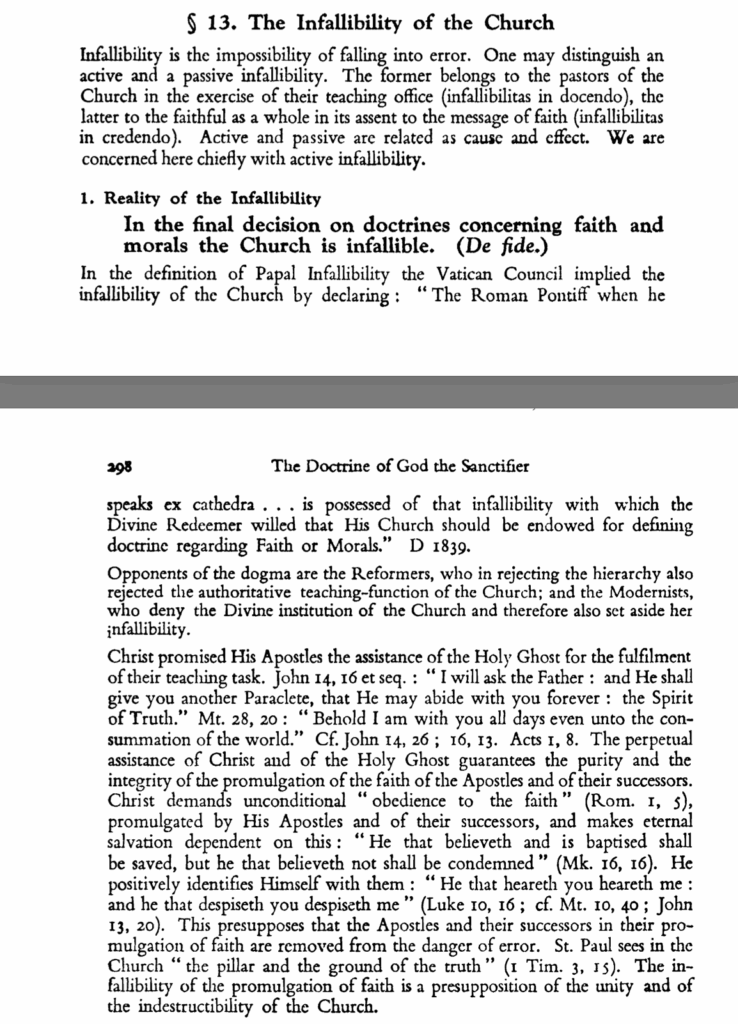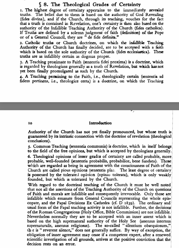 Dr. Ludwig Ott lists above the levels of theological certainty as six levels from highest to lowest on the infallibility scale. I will summarize the above screenshot here: