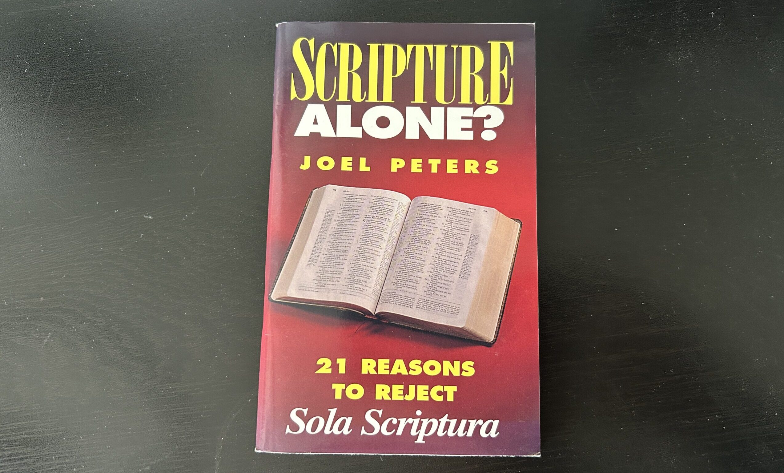 In my last article Debating Protestants, I discussed how and why I used to debate Protestants on a nearly-daily basis with open-Bible verse-wars when I was in my early 20s. After learning that these verse-wars rarely make converts, I learned the best way to disprove Protestantism is by simply overturning their completely non-Biblical notion of Sola Scriptura. The little pamphlet in the above picture is called Scripture Alone? 21 Reasons to Reject Sola Scriptura by Mr. Joel Peters. It is the very best book I have ever seen to aid Catholics in immediately sidelining the intellectual errors of Protestantism. But it's very difficult to find on the internet now. Thus, I copied it below (word-for-word) from past websites that apparently crossposted it into the public forum. Perhaps the author took it down to sell his new book, which I’m sure is [...]